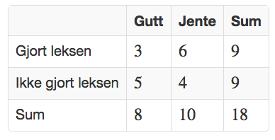 a) Systematiser opplysningene ovenfor i en krysstabell.