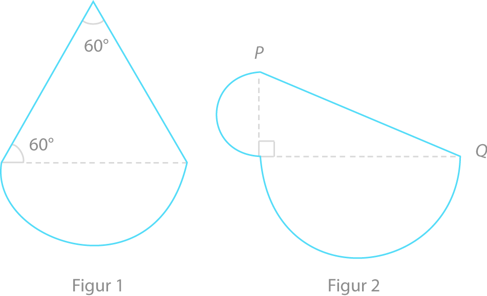 Figur 2 er sammensatt av en trekant og to halvsirkler. Den minste halvsirkelen har radius 2,5 og den største har radius 6,0.