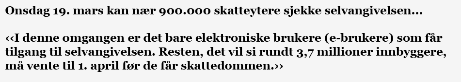 Nedenfor ser du et annet sitat fra nettet i forbindelse med skatteoppgjøret.