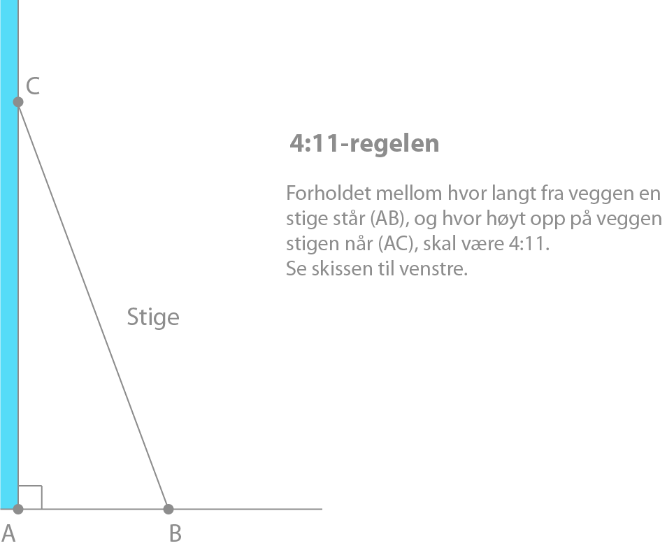 Hans og Grete bruker « 4 :11 -regelen» når de setter opp stiger.