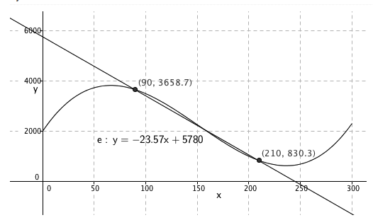 f(x)=0,0013x30,59x2+61x+20000x300f(x)=0,0013x^{3}-0,59x^{2}+61x +2000 \\ \\ \\ \\ 0\leq x\leq 300