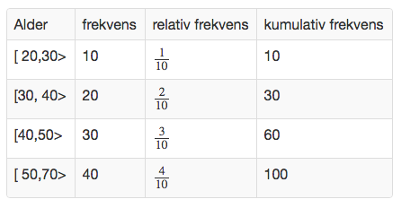 Tabellen ovenfor viser aldersfordelingen for lærerne ved en skole.