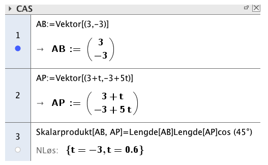 c) Bruk blant annet skalarprodukt til å finne koordinatene til P slik at ABAP\overrightarrow{AB}\perp \overrightarrow{AP}