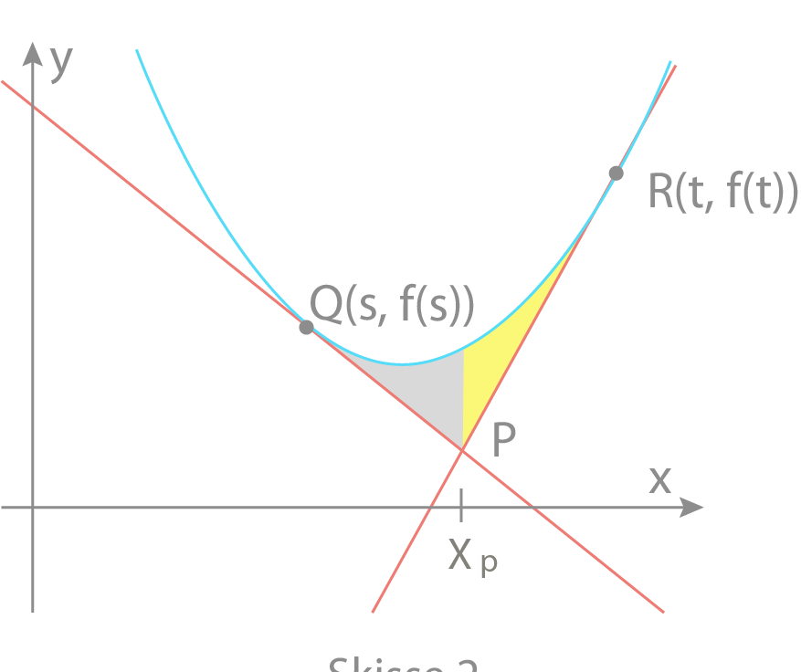Summen av areala som blir fjerna (dei kvite trekantane), er gitt ved rekkja