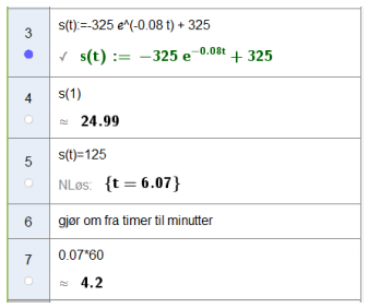 • s(t)s(t) er den tilbakelagte veilengden målt i kilometer