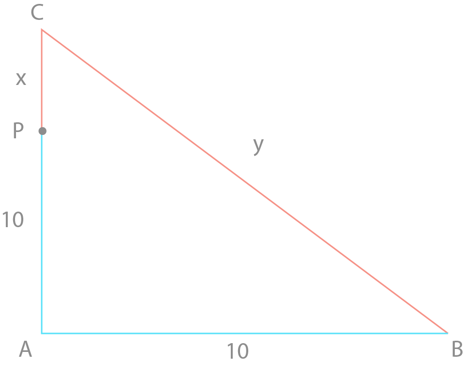 Vi setter PC = x og CB = y .