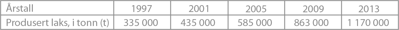 a) Forklar at den totale inntekten I fra fiskesalget en uke er gitt ved