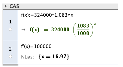 b) Bestem K\'(100). Hva forteller dette svaret oss?