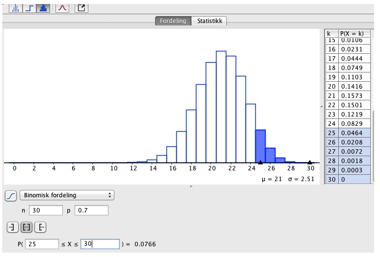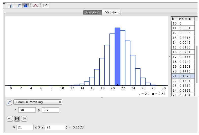 I resten av denne oppgaven går vi ut fra at X er binomisk fordelt.
