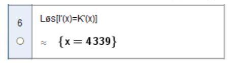 K(ˊx)=0,02x+25 , x[500,2000]K\'(x) = 0,02x + 25 \ , \ x \in [500, 2000]